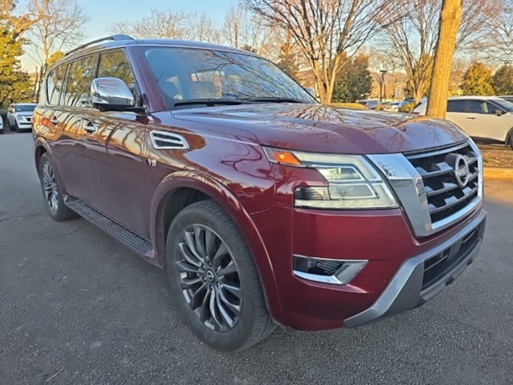 We are thrilled to offer this 2022 Nissan Armada Platinum in Coulis Red Pearl with Almond Leather Seat Trim. For more details on this Armada, call 615-790-2500. Our friendly, professional staff is standing by and ready to assist you! Come in and see why we have consistently been rated among the top pre-owned dealerships in TN.