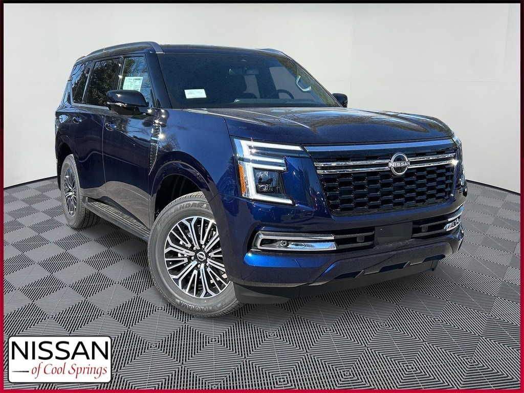 The complete list of features includes: Captain's Chair Seat Package (2nd Row Center Console w/2 Cupholders, 2nd Row Outboard Captain's Chairs w/Armrests, and EZ Flex 2nd-Row Seating System w/1-Touch Release), 4WD, 12 Speakers, 20" Painted Alloy Wheels, 3rd row seats: split-bench, 4-Wheel Disc Brakes, ABS brakes, Air Conditioning, Alloy wheels, AM/FM radio: SiriusXM, Anti-whiplash front head restraints, Auto High-beam Headlights, Auto tilt-away steering wheel, Auto-dimming door mirrors, Auto-dimming Rear-View mirror, Auto-leveling suspension, Automatic temperature control, Brake assist, Bumpers: body-color, Carpeted Floor Mats - Captain Chairs, Center Front Spoiler, Cruise Control, Delay-off headlights, Driver door bin, Driver vanity mirror, Dual front impact airbags, Dual front side impact airbags, Electronic Stability Control, Emergency communication system: NissanConnect Services, Four wheel independent suspension, Front anti-roll bar, Front Bucket Seats, Front Center Armrest, Front dual zone A/C, Front reading lights, Fully automatic headlights, Garage door transmitter: myQ Connected Garage, Genuine wood dashboard insert, Heated Front Bucket Seats, Heated front seats, Heated Side View Mirrors, Heated steering wheel, HVAC memory, Illuminated entry, Knee airbag, Leather steering wheel, Low tire pressure warning, Memory seat, Navigation System, Occupant sensing airbag, Outside temperature display, Overhead airbag, Overhead console, Panic alarm, Passenger door bin, Passenger vanity mirror, Power door mirrors, Power driver seat, Power Liftgate, Power passenger seat, Power steering, Power windows, Radio: NissanConnect w/SiriusXM 360L, Rain sensing wipers, Rear air conditioning, Rear anti-roll bar, Rear reading lights, Rear seat center armrest, Rear window defroster, Rear window wiper, Reclining 3rd row seat, Remote keyless entry, Security system, Speed-sensing steering, Speed-Sensitive Wipers, Splash Guards, Split folding rear seat, Spoiler, Steering wheel memory, Steering wheel mounted audio controls, Tachometer, TailorFit Seat Trim, Telescoping steering wheel, Tilt steering wheel, Traction control, Trip computer, Turn signal indicator mirrors, Variably intermittent wipers, and Voltmeter!