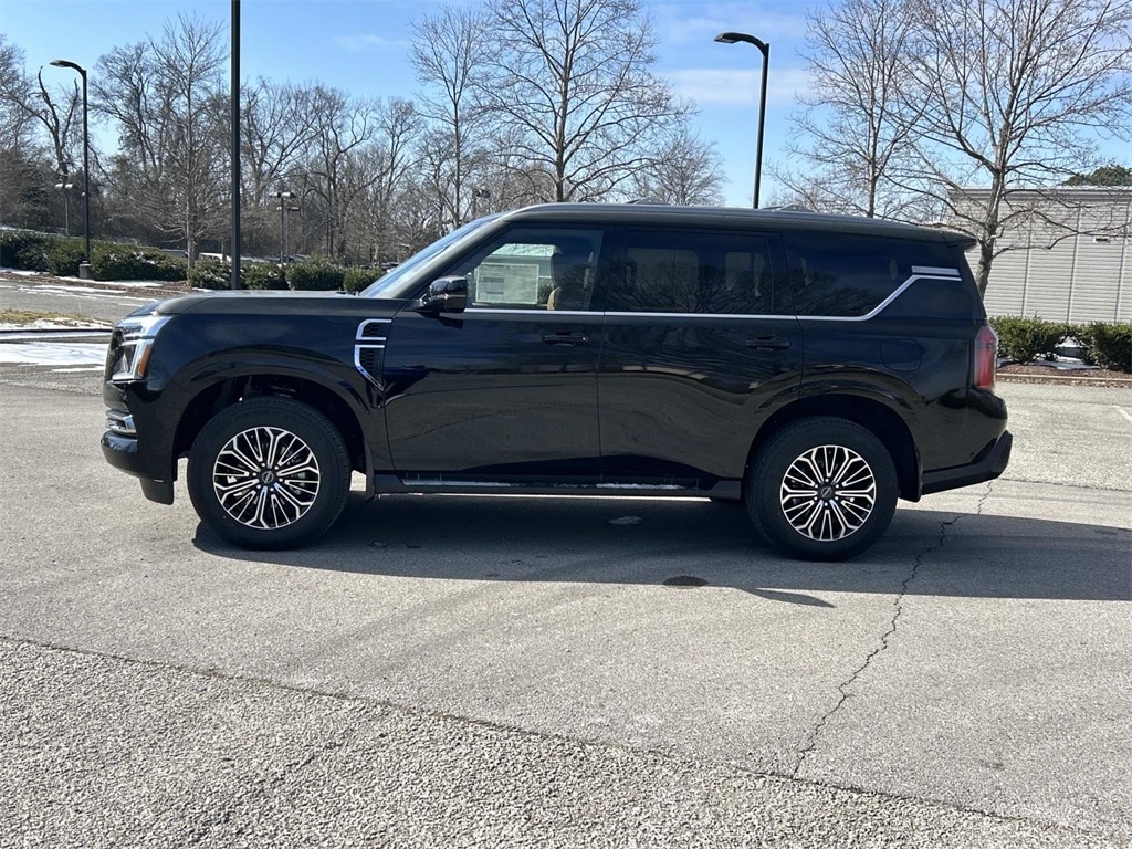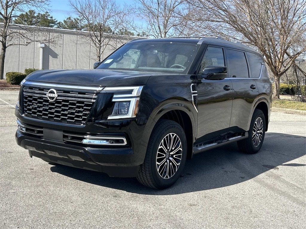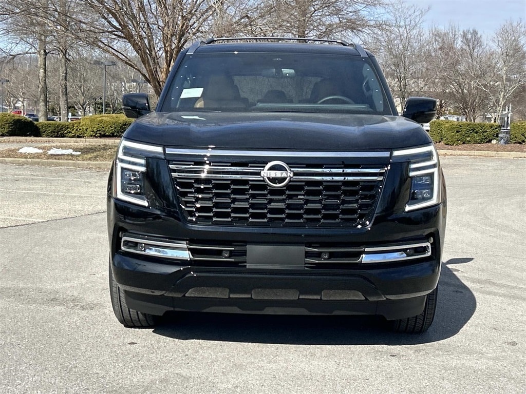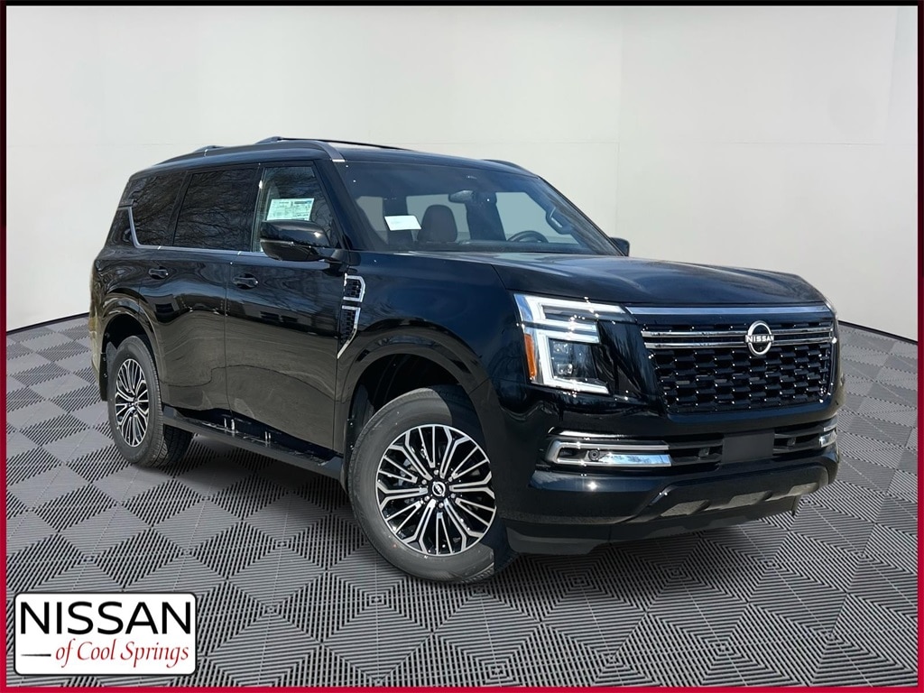 The complete list of features includes: 12 Speakers, 3rd row seats: split-bench, 4-Wheel Disc Brakes, ABS brakes, Air Conditioning, Alloy wheels, AM/FM radio: SiriusXM w/360L, Anti-whiplash front head restraints, Apple CarPlay/Android Auto, Auto High-beam Headlights, Auto tilt-away steering wheel, Auto-dimming door mirrors, Auto-dimming Rear-View mirror, Auto-leveling suspension, Automatic temperature control, Brake assist, Bumpers: body-color, Compass, Cruise Control, Delay-off headlights, Driver door bin, Driver vanity mirror, Dual front impact airbags, Dual front side impact airbags, Electronic Stability Control, Emergency communication system: NissanConnect Services, Four wheel independent suspension, Front anti-roll bar, Front Bucket Seats, Front Center Armrest, Front dual zone A/C, Front reading lights, Fully automatic headlights, Garage door transmitter: myQ Connected Garage, Genuine wood dashboard insert, Heated Front Bucket Seats, Heated front seats, Heated Side View Mirrors, Heated steering wheel, HVAC memory, Illuminated entry, Knee airbag, Leather steering wheel, Low tire pressure warning, Memory seat, Navigation system: Google Maps, Occupant sensing airbag, Outside temperature display, Overhead airbag, Overhead console, Panic alarm, Passenger door bin, Passenger vanity mirror, Power door mirrors, Power driver seat, Power Liftgate, Power passenger seat, Power steering, Power windows, Radio: NissanConnect with SiriusXM 360L, Rain sensing wipers, Rear air conditioning, Rear anti-roll bar, Rear reading lights, Rear seat center armrest, Rear window defroster, Rear window wiper, Reclining 3rd row seat, Remote keyless entry, Security system, Speed-sensing steering, Speed-Sensitive Wipers, Split folding rear seat, Spoiler, Steering wheel memory, Steering wheel mounted audio controls, Tachometer, TailorFit Seat Trim, Telescoping steering wheel, Tilt steering wheel, Traction control, Trip computer, Turn signal indicator mirrors, Variably intermittent wipers, Voltmeter, and Wheels: 20" x 8.5J Machined and Painted Alloy!