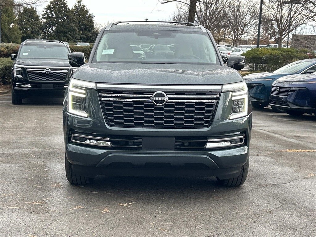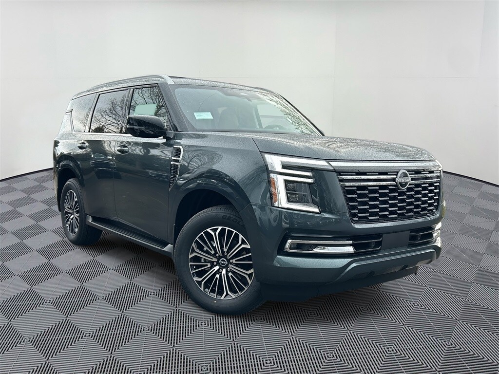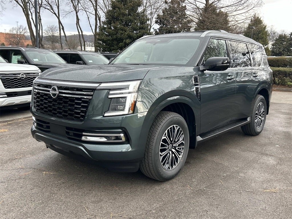 The complete list of features includes: 4WD, 12 Speakers, 3rd row seats: split-bench, 4-Wheel Disc Brakes, ABS brakes, Air Conditioning, Alloy wheels, AM/FM radio: SiriusXM w/360L, Anti-whiplash front head restraints, Apple CarPlay/Android Auto, Auto High-beam Headlights, Auto tilt-away steering wheel, Auto-dimming door mirrors, Auto-dimming Rear-View mirror, Auto-leveling suspension, Automatic temperature control, Brake assist, Bumpers: body-color, Center Front Spoiler, Climate Controlled Heated and Ventilated Front Seats, Compass, Cruise Control, Delay-off headlights, Driver door bin, Driver vanity mirror, Dual front impact airbags, Dual front side impact airbags, Electronic Stability Control, Emergency communication system: NissanConnect Services, Four wheel independent suspension, Front anti-roll bar, Front Bucket Seats, Front Center Armrest, Front dual zone A/C, Front fog lights, Front reading lights, Fully automatic headlights, Garage door transmitter: HomeLink, Genuine wood dashboard insert, Heated front seats, Heated rear seats, Heated Side View Mirrors, Heated steering wheel, HVAC memory, Illuminated entry, Knee airbag, Leather steering wheel, Low tire pressure warning, Memory seat, Navigation system: Google Maps, Occupant sensing airbag, Outside temperature display, Overhead airbag, Overhead console, Panic alarm, Passenger door bin, Passenger vanity mirror, Power door mirrors, Power driver seat, Power Liftgate, Power Panoramic Moonroof, Power passenger seat, Power steering, Power windows, Premium Paint, Quilted Leather Seat Trim, Radio: NissanConnect with SiriusXM 360L, Rain sensing wipers, Rear air conditioning, Rear anti-roll bar, Rear reading lights, Rear window defroster, Rear window wiper, Reclining 3rd row seat, Remote keyless entry, Security system, Speed-sensing steering, Speed-Sensitive Wipers, Split folding rear seat, Spoiler, Steering wheel memory, Steering wheel mounted audio controls, Tachometer, Telescoping steering wheel, Tilt steering wheel, Traction control, Trip computer, Turn signal indicator mirrors, Variably intermittent wipers, Ventilated front seats, Voltmeter, and Wheels: 20" x 8.5J Machined and Painted Alloy!