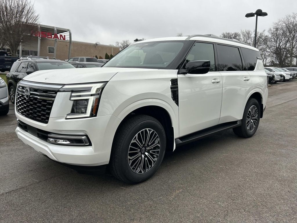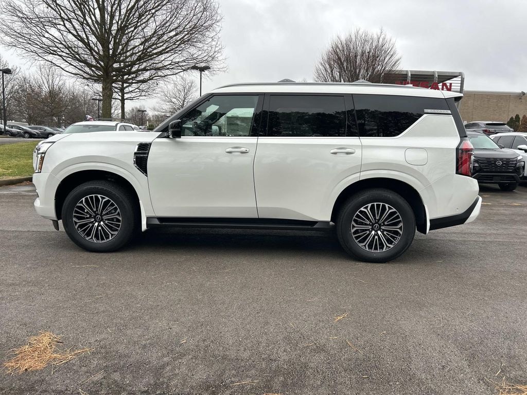 The complete list of features includes: ProPILOT Assist 2.1 (Heads-Up Display), 4WD, 12 Speakers, 3rd row seats: split-bench, 4-Wheel Disc Brakes, ABS brakes, Air Conditioning, Alloy wheels, AM/FM radio: SiriusXM w/360L, Anti-whiplash front head restraints, Apple CarPlay/Android Auto, Auto High-beam Headlights, Auto tilt-away steering wheel, Auto-dimming door mirrors, Auto-dimming Rear-View mirror, Auto-leveling suspension, Automatic temperature control, Brake assist, Bumpers: body-color, Carpeted Floor Mats with Captain Chairs, Center Front Spoiler, Climate Controlled Heated and Ventilated Front Seats, Compass, Cross Bars, Cruise Control, Delay-off headlights, Driver door bin, Driver vanity mirror, Dual front impact airbags, Dual front side impact airbags, Electronic Stability Control, Emergency communication system: NissanConnect Services, Four wheel independent suspension, Front anti-roll bar, Front Bucket Seats, Front Center Armrest, Front dual zone A/C, Front fog lights, Front reading lights, Fully automatic headlights, Garage door transmitter: HomeLink, Genuine wood dashboard insert, Heated front seats, Heated rear seats, Heated Side View Mirrors, Heated steering wheel, HVAC memory, Illuminated entry, Illuminated Kick Plates, Knee airbag, Leather steering wheel, Low tire pressure warning, Memory seat, Navigation system: Google Maps, Occupant sensing airbag, Outside temperature display, Overhead airbag, Overhead console, Panic alarm, Passenger door bin, Passenger vanity mirror, Power door mirrors, Power driver seat, Power Liftgate, Power Panoramic Moonroof, Power passenger seat, Power steering, Power windows, Premium Paint, Quilted Leather Seat Trim, Radio: NissanConnect with SiriusXM 360L, Rain sensing wipers, Rear air conditioning, Rear anti-roll bar, Rear Bumper Protector, Rear reading lights, Rear window defroster, Rear window wiper, Reclining 3rd row seat, Remote keyless entry, Security system, Speed-sensing steering, Speed-Sensitive Wipers, Splash Guards, Split folding rear seat, Spoiler, Steering wheel memory, Steering wheel mounted audio controls, Tachometer, Telescoping steering wheel, Tilt steering wheel, Traction control, Trip computer, Turn signal indicator mirrors, Variably intermittent wipers, Ventilated front seats, Voltmeter, and Wheels: 20" x 8.5J Machined and Painted Alloy!