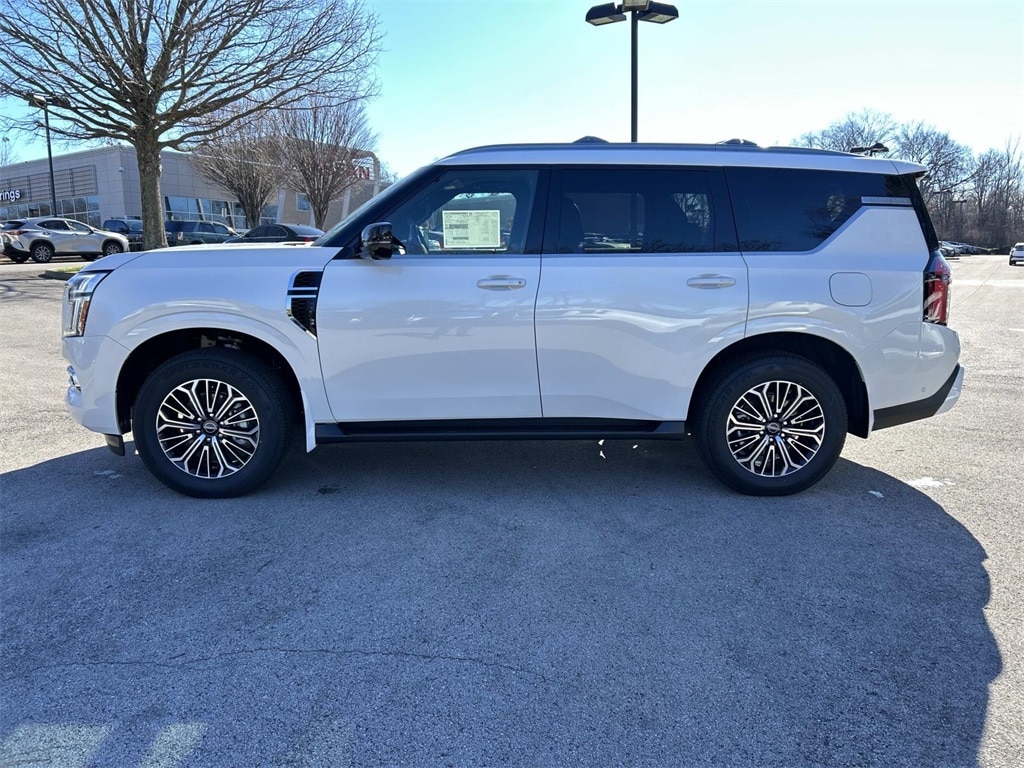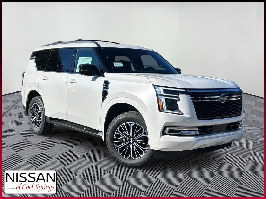The complete list of features includes: 4WD, 12 Speakers, 3rd row seats: split-bench, 4-Wheel Disc Brakes, ABS brakes, Air Conditioning, Alloy wheels, AM/FM radio: SiriusXM w/360L, Anti-whiplash front head restraints, Apple CarPlay/Android Auto, Auto High-beam Headlights, Auto tilt-away steering wheel, Auto-dimming door mirrors, Auto-dimming Rear-View mirror, Auto-leveling suspension, Automatic temperature control, Brake assist, Bumpers: body-color, Carpeted Floor Mats with Captain Chairs, Center Front Spoiler, Climate Controlled Heated and Ventilated Front Seats, Compass, Cross Bars, Cruise Control, Delay-off headlights, Driver door bin, Driver vanity mirror, Dual front impact airbags, Dual front side impact airbags, Electronic Stability Control, Emergency communication system: NissanConnect Services, Four wheel independent suspension, Front anti-roll bar, Front Bucket Seats, Front Center Armrest, Front dual zone A/C, Front fog lights, Front reading lights, Fully automatic headlights, Garage door transmitter: HomeLink, Genuine wood dashboard insert, Heated front seats, Heated rear seats, Heated Side View Mirrors, Heated steering wheel, HVAC memory, Illuminated entry, Illuminated Kick Plates, Knee airbag, Leather steering wheel, Low tire pressure warning, Memory seat, Navigation system: Google Maps, Occupant sensing airbag, Outside temperature display, Overhead airbag, Overhead console, Panic alarm, Passenger door bin, Passenger vanity mirror, Power door mirrors, Power driver seat, Power Liftgate, Power Panoramic Moonroof, Power passenger seat, Power steering, Power windows, Premium Paint, Quilted Leather Seat Trim, Radio: NissanConnect with SiriusXM 360L, Rain sensing wipers, Rear air conditioning, Rear anti-roll bar, Rear Bumper Protector, Rear reading lights, Rear window defroster, Rear window wiper, Reclining 3rd row seat, Remote keyless entry, Security system, Speed-sensing steering, Speed-Sensitive Wipers, Splash Guards, Split folding rear seat, Spoiler, Steering wheel memory, Steering wheel mounted audio controls, Tachometer, Telescoping steering wheel, Tilt steering wheel, Traction control, Trip computer, Turn signal indicator mirrors, Variably intermittent wipers, Ventilated front seats, Voltmeter, and Wheels: 20" x 8.5J Machined and Painted Alloy!