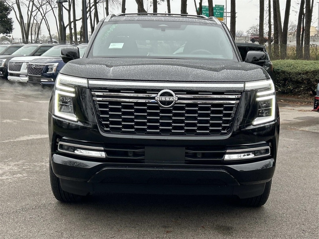 The complete list of features includes: 4WD, 12 Speakers, 3rd row seats: split-bench, 4-Wheel Disc Brakes, ABS brakes, Adaptive suspension, Air Conditioning, Alloy wheels, AM/FM radio: SiriusXM w/360L, Anti-whiplash front head restraints, Apple CarPlay/Android Auto, Auto High-beam Headlights, Auto tilt-away steering wheel, Auto-dimming door mirrors, Auto-dimming Rear-View mirror, Auto-leveling suspension, Automatic temperature control, Brake assist, Bumpers: body-color, Carpeted Floor Mats with Captain Chairs, Center Front Spoiler, Climate Controlled Heated and Ventilated Front Seats, Compass, Cross Bars, Cruise Control, Delay-off headlights, Driver door bin, Driver vanity mirror, Dual front impact airbags, Dual front side impact airbags, Electronic Stability Control, Emergency communication system: NissanConnect Services, Four wheel independent suspension, Front anti-roll bar, Front Bucket Seats, Front Center Armrest, Front dual zone A/C, Front fog lights, Front reading lights, Fully automatic headlights, Garage door transmitter: HomeLink, Genuine wood dashboard insert, Heads-Up Display, Heated front seats, Heated rear seats, Heated Side View Mirrors, Heated steering wheel, HVAC memory, Illuminated entry, Illuminated Kick Plates, Knee airbag, Leather steering wheel, Low tire pressure warning, Memory seat, Navigation system: Google Maps, Occupant sensing airbag, Outside temperature display, Overhead airbag, Overhead console, Panic alarm, Passenger door bin, Passenger vanity mirror, Power door mirrors, Power driver seat, Power Liftgate, Power Panoramic Moonroof, Power passenger seat, Power steering, Power windows, ProPILOT Assist 2.1, Quilted Leather Seat Trim, Radio: NissanConnect with SiriusXM 360L, Rain sensing wipers, Rear air conditioning, Rear anti-roll bar, Rear Bumper Protector, Rear reading lights, Rear window defroster, Rear window wiper, Reclining 3rd row seat, Remote keyless entry, Security system, Speed-sensing steering, Speed-Sensitive Wipers, Splash Guards, Split folding rear seat, Spoiler, Steering wheel memory, Steering wheel mounted audio controls, Tachometer, Telescoping steering wheel, Tilt steering wheel, Traction control, Trip computer, Turn signal indicator mirrors, Variably intermittent wipers, Ventilated front seats, Voltmeter, and Wheels: 22" x 8.5J Machined & Painted Alloy!