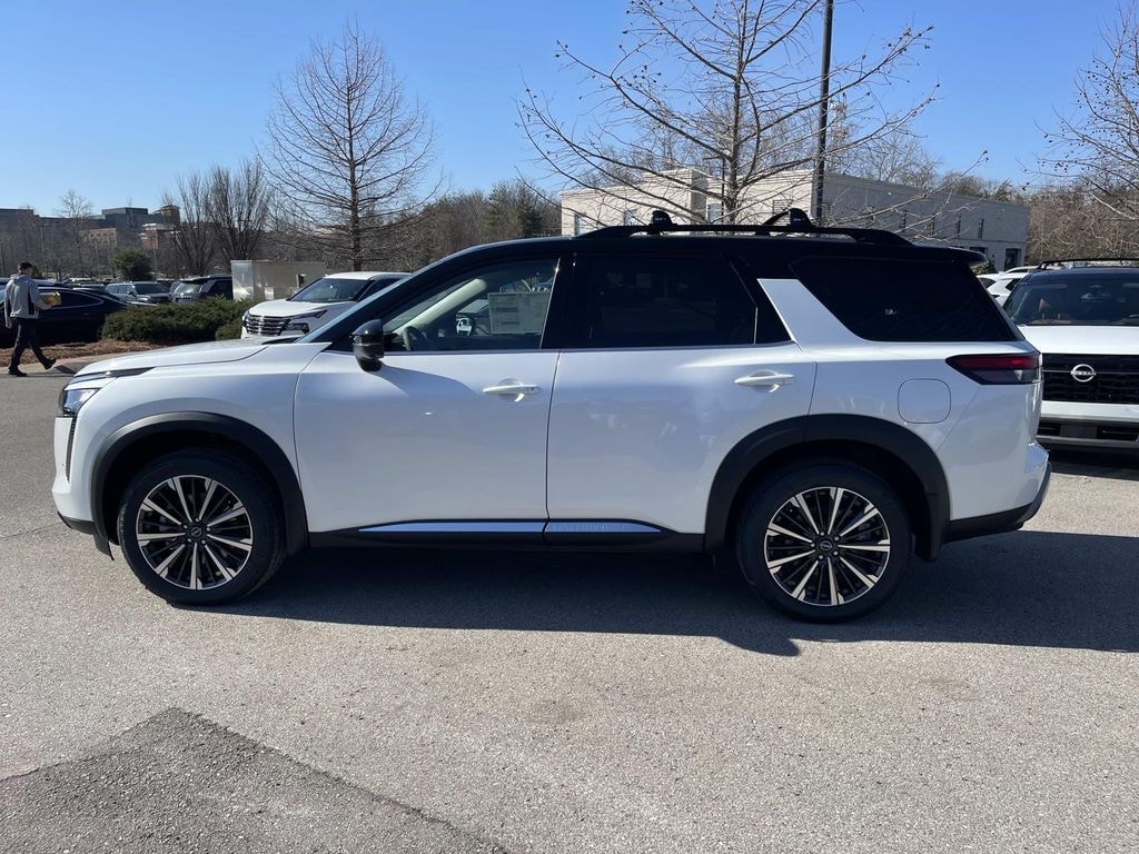 The complete list of features includes: Cargo Package (Cargo Area Protector, Cargo Net, and First Aid), Platinum Captain Chairs Package (2nd-Row Captain Chairs and 2nd-Row Removable Centre Console), 4WD, 13 Speakers, 3rd row seats: bench, 4-Piece Black Splash Guards, 4-Wheel Disc Brakes, ABS brakes, Air Conditioning, Alloy wheels, AM/FM radio: SiriusXM w/360L, Auto High-beam Headlights, Auto tilt-away steering wheel, Auto-dimming Rear-View mirror, Automatic temperature control, Bodyside moldings, Bose Premium Audio System, Brake assist, Bumpers: body-color, Captain's Chairs Carpeted Floor Mats, Climate Controlled Front Bucket Seats, Cross Bars, Cruise Control, Delay-off headlights, Driver door bin, Driver vanity mirror, Dual front impact airbags, Dual front side impact airbags, Electronic Stability Control, Emergency communication system: NissanConnect Services, Four wheel independent suspension, Front anti-roll bar, Front Bucket Seats, Front Center Armrest, Front dual zone A/C, Front reading lights, Fully automatic headlights, Garage door transmitter: HomeLink, Heads-Up Display, Heated front seats, Heated rear seats, Heated Side View Mirrors, Heated steering wheel, Illuminated entry, Knee airbag, Low tire pressure warning, Memory seat, NissanConnect featuring Apple CarPlay and Android Auto, Occupant sensing airbag, Outside temperature display, Overhead airbag, Overhead console, Panic alarm, Passenger door bin, Passenger vanity mirror, Power door mirrors, Power driver seat, Power Liftgate, Power Panoramic Moonroof, Power passenger seat, Power steering, Power windows, Radio data system, Radio: AM/FM Audio System with NissanConnect, Rain sensing wipers, Rear air conditioning, Rear anti-roll bar, Rear reading lights, Rear seat center armrest, Rear side impact airbag, Rear window defroster, Rear window wiper, Reclining 3rd row seat, Remote keyless entry, Security system, Semi-Aniline Leather-Appointed Seating Surfaces, Speed-sensing steering, Speed-Sensitive Wipers, Split folding rear seat, Spoiler, Steering wheel memory, Steering wheel mounted audio controls, Tachometer, Telescoping steering wheel, Tilt steering wheel, Traction control, Trip computer, Turn signal indicator mirrors, Variably intermittent wipers, Ventilated front seats, and Wheels: 20" Machined Alloy!