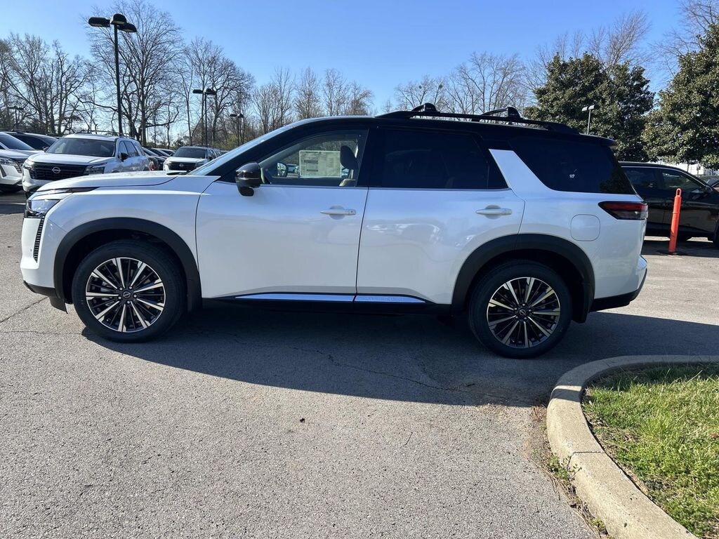 The complete list of features includes: Cargo Package (Cargo Area Protector, Cargo Net, and First Aid), Platinum Captain Chairs Package (2nd-Row Captain Chairs and 2nd-Row Removable Centre Console), 4WD, 13 Speakers, 3rd row seats: bench, 4-Piece Black Splash Guards, 4-Wheel Disc Brakes, ABS brakes, Air Conditioning, Alloy wheels, AM/FM radio: SiriusXM w/360L, Auto High-beam Headlights, Auto tilt-away steering wheel, Auto-dimming Rear-View mirror, Automatic temperature control, Bodyside moldings, Bose Premium Audio System, Brake assist, Bumpers: body-color, Captain's Chairs Carpeted Floor Mats, Climate Controlled Front Bucket Seats, Cross Bars, Cruise Control, Delay-off headlights, Driver door bin, Driver vanity mirror, Dual front impact airbags, Dual front side impact airbags, Electronic Stability Control, Emergency communication system: NissanConnect Services, Four wheel independent suspension, Front anti-roll bar, Front Bucket Seats, Front Center Armrest, Front dual zone A/C, Front reading lights, Fully automatic headlights, Garage door transmitter: HomeLink, Heads-Up Display, Heated front seats, Heated rear seats, Heated Side View Mirrors, Heated steering wheel, Illuminated entry, Knee airbag, Low tire pressure warning, Memory seat, NissanConnect featuring Apple CarPlay and Android Auto, Occupant sensing airbag, Outside temperature display, Overhead airbag, Overhead console, Panic alarm, Passenger door bin, Passenger vanity mirror, Power door mirrors, Power driver seat, Power Liftgate, Power Panoramic Moonroof, Power passenger seat, Power steering, Power windows, Radio data system, Radio: AM/FM Audio System with NissanConnect, Rain sensing wipers, Rear air conditioning, Rear anti-roll bar, Rear reading lights, Rear seat center armrest, Rear side impact airbag, Rear window defroster, Rear window wiper, Reclining 3rd row seat, Remote keyless entry, Security system, Semi-Aniline Leather-Appointed Seating Surfaces, Speed-sensing steering, Speed-Sensitive Wipers, Split folding rear seat, Spoiler, Steering wheel memory, Steering wheel mounted audio controls, Tachometer, Telescoping steering wheel, Tilt steering wheel, Traction control, Trip computer, Turn signal indicator mirrors, Variably intermittent wipers, Ventilated front seats, and Wheels: 20" Machined Alloy!