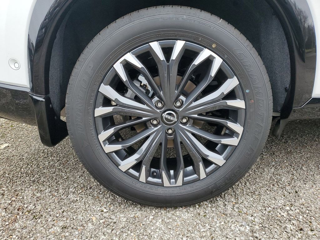 The complete list of features includes: Platinum Premium Package (Head-Up Display, Heated Rear Seats, Motion-Activated Power Liftgate, and Tri-Zone Automatic Temperature Control), AWD, 10 Speakers, 4-Wheel Disc Brakes, ABS brakes, Air Conditioning, Alloy wheels, AM/FM radio: SiriusXM w/360L, Auto High-beam Headlights, Auto-dimming Rear-View mirror, Automatic temperature control, Black Splash Guards (set of 4), Bose Premium Audio System, Brake assist, Bumpers: body-color, Chrome Rear Bumper Protector, Cruise Control, Delay-off headlights, Driver door bin, Driver vanity mirror, Dual front impact airbags, Dual front side impact airbags, Electronic Stability Control, Emergency communication system: NissanConnect Services, First Aid Kit, Floor Mats with 2-Piece Cargo Area Protector, Four wheel independent suspension, Front anti-roll bar, Front Bucket Seats, Front Center Armrest, Front dual zone A/C, Front reading lights, Fully automatic headlights, Garage door transmitter: myQ Connected Garage, Heads-Up Display, Heated Front Bucket Seats, Heated front seats, Heated Side View Mirrors, Heated steering wheel, Illuminated entry, Knee airbag, Low tire pressure warning, Memory seat, Navigation system: Google Maps, Occupant sensing airbag, Outside temperature display, Overhead airbag, Overhead console, Panic alarm, Passenger door bin, Passenger vanity mirror, Power door mirrors, Power driver seat, Power Liftgate, Power Panoramic Moonroof, Power passenger seat, Power steering, Power windows, Premium Paint, Quilted Semi-Aniline Leather-Appointed Seat Trim, Radio data system, Radio: AM/FM NissanConnect with Navigation, Rear anti-roll bar, Rear reading lights, Rear seat center armrest, Rear side impact airbag, Rear window defroster, Rear window wiper, Remote keyless entry, Roof Rail Cross Bars, Security system, Speed-sensing steering, Speed-Sensitive Wipers, Split folding rear seat, Spoiler, Steering wheel mounted audio controls, Tachometer, Telescoping steering wheel, Tilt steering wheel, Traction control, Trip computer, Turn signal indicator mirrors, Variably intermittent wipers, Wheels: 19" Unique Dark Painted Aluminum Alloy, and Wireless Apple CarPlay/Wireless Android Auto!