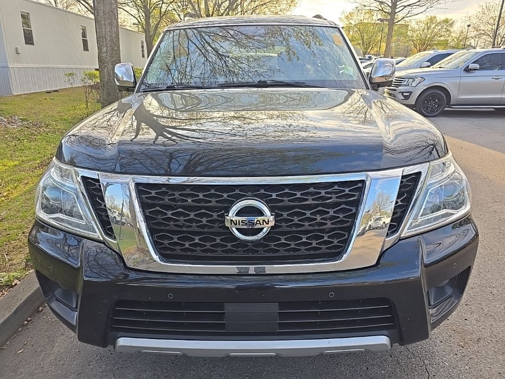 The full list of features includes: Interior Lighting Package, Premium Package (Automatic Emergency Braking (AEB), Blind Spot Warning, Intelligent Back-Up Intervention (I-BI), Intelligent Cruise Control w/Full-Spd Range (ICC), Intelligent Distance Control (I-DC), Intelligent Forward Collision Warning (I-FCW), and Power Sliding Moonroof w/Front Tilt & Rear Slide), 13 Speakers, 2.937 Axle Ratio, 2nd & 3rd Row Carpeted Mats, 3rd row seats: split-bench, 4-Wheel Disc Brakes, ABS brakes, Air Conditioning, Alloy wheels, AM/FM radio: SiriusXM, Anti-whiplash front head restraints, Auto tilt-away steering wheel, Auto-dimming door mirrors, Auto-dimming Rear-View mirror, Auto-leveling suspension, Automatic temperature control, Brake assist, Bumpers: body-color, CD player, Cruise Control, Delay-off headlights, Driver door bin, Driver vanity mirror, Dual front impact airbags, Dual front side impact airbags, Electronic Stability Control, Emergency communication system: NissanConnect Services, Four wheel independent suspension, Front anti-roll bar, Front Bucket Seats, Front Center Armrest, Front dual zone A/C, Front fog lights, Front reading lights, Fully automatic headlights, Garage door transmitter: HomeLink, Heated Front Bucket Seats w/Driver Memory, Heated front seats, Heated Side View Mirrors, Illuminated entry, Leather Shift Knob, Leather-Appointed Seat Trim, Low tire pressure warning, Memory seat, Navigation System, Occupant sensing airbag, Outside temperature display, Overhead airbag, Overhead console, Panic alarm, Passenger door bin, Passenger vanity mirror, Power door mirrors, Power driver seat, Power Liftgate, Power passenger seat, Power steering, Power windows, Radio data system, Radio: Bose AM/FM/SXM/CD/MP3/HD Radio, Rain sensing wipers, Rear air conditioning, Rear anti-roll bar, Rear reading lights, Rear seat center armrest, Rear window defroster, Rear window wiper, Reclining 3rd row seat, Remote keyless entry, Roof rack: rails only, Roof Rail Cross Bars, Security system, Speed-sensing steering, Speed-Sensitive Wipers, Split folding rear seat, Spoiler, Steering wheel memory, Steering wheel mounted audio controls, Tachometer, Telescoping steering wheel, Tilt steering wheel, Traction control, Trip computer, Turn signal indicator mirrors, Variably intermittent wipers, Voltmeter, Welcome Lighting, and Wheels: 20" Machined Finish Painted Alloy.